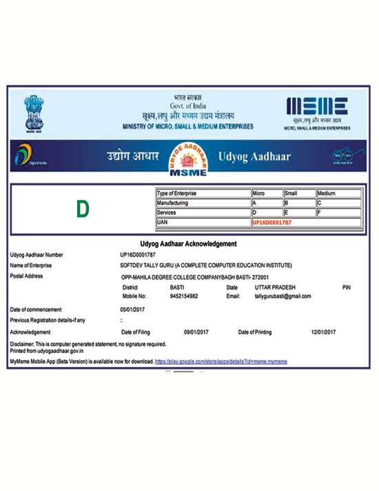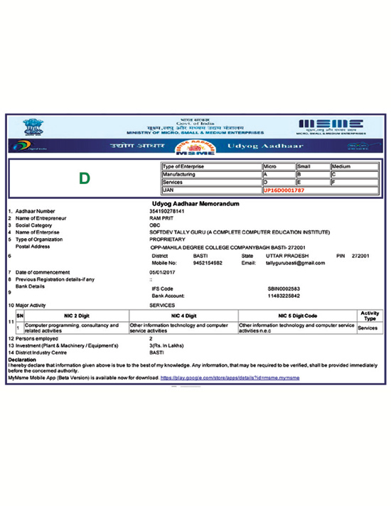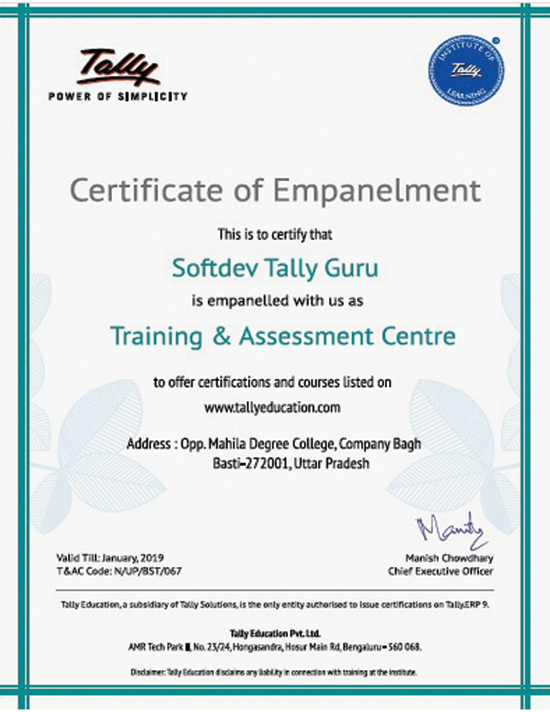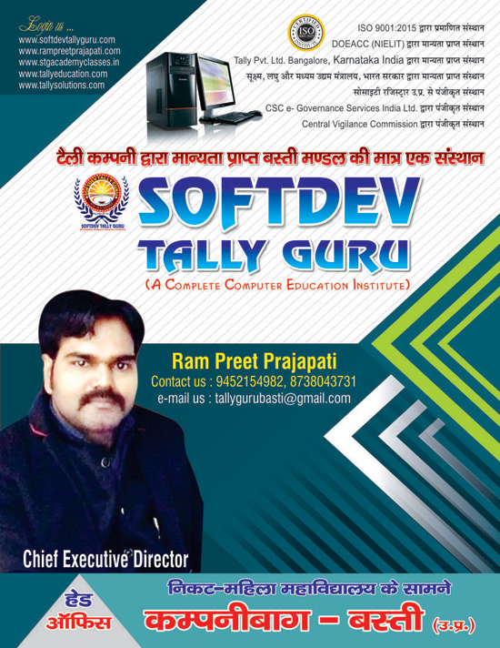 • SOFTDEV TALLY GURU (Nagar Panchyat, Bharni Chafa, Siddharthnagar)