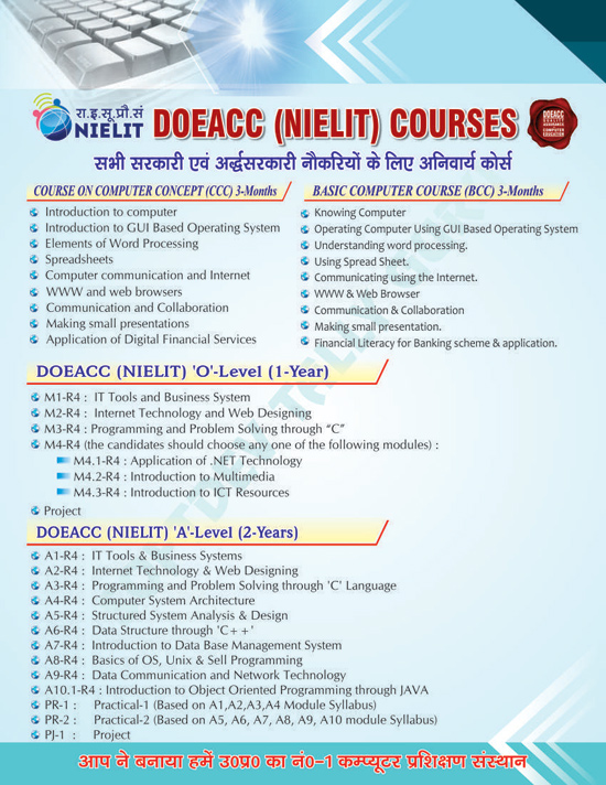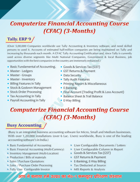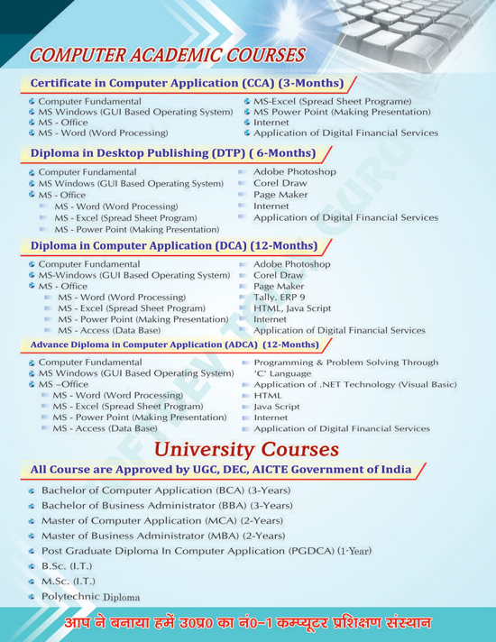 We are teching in various computer courses like Accounting, Hardware and Software and Networking.